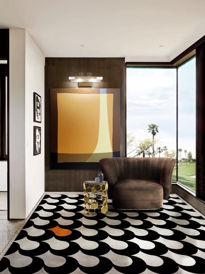 A beutiful and contemporary reading corner with the cinematographic James rug by Rug'Society