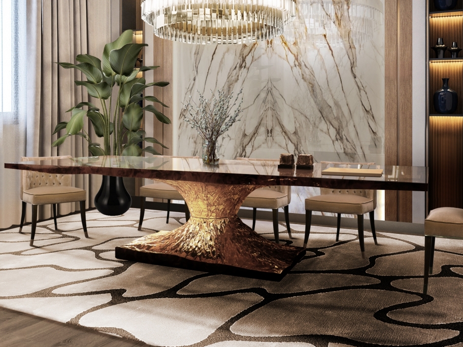 Aesthetic Dining Room Design With Metamorphosis Soft Rug