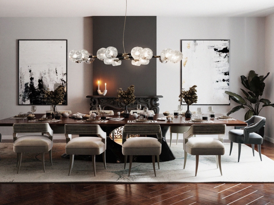 Elegant Dining Room With Cell Neutral Rug
