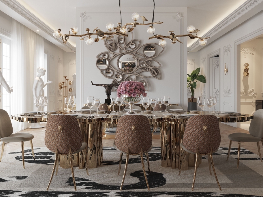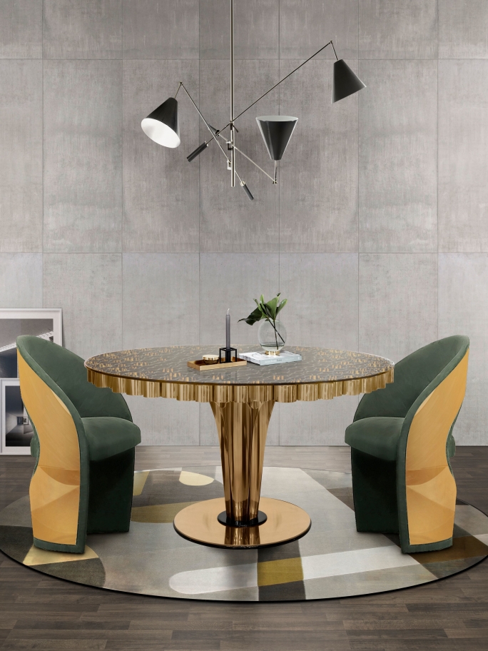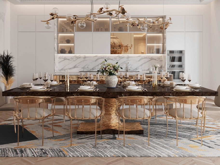 High-end and Unique Dining Room with Koi Rug by Rug'Society
