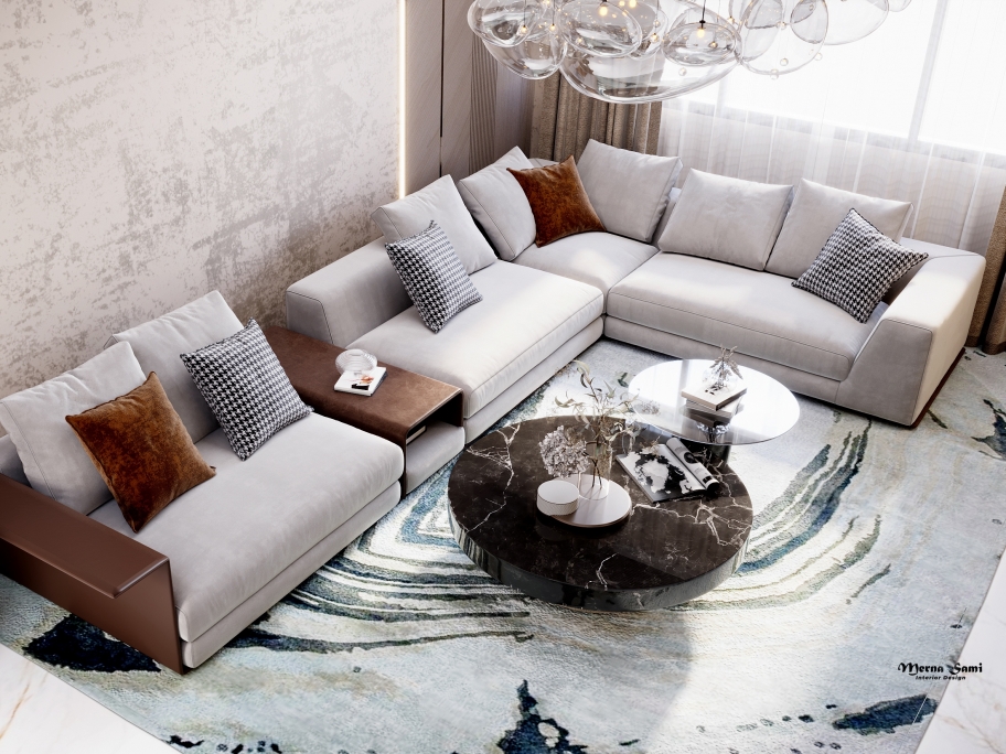 Luxurious Living Room With Neutral Version of Adler Rug by Rug'Society