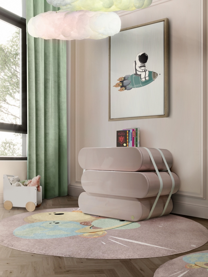 This glaring and glamorous reading corner featuring the Oslo rug is the definition of Nobility. Oslo is a shaggy long pile rug handmade with Bamboo silk and New Zealand wool, inspired by the elegance of Neutral tones. The Oslo rug gives this luxurious reading corner the most stunning and comfortable look.