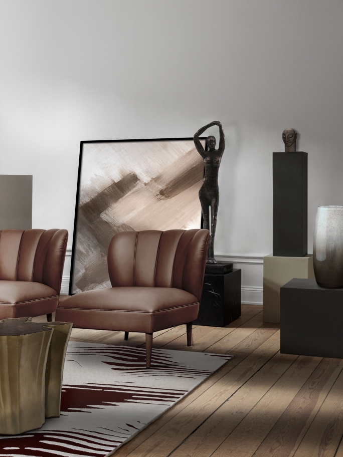 This modern classic living room with earth tones is the perfect place to let the Cell neutral rug highlight its simple design and bring some light into the room. The new Borneo sofa by BRABBU comes to bring a relaxed feeling and forget the rigid lines.