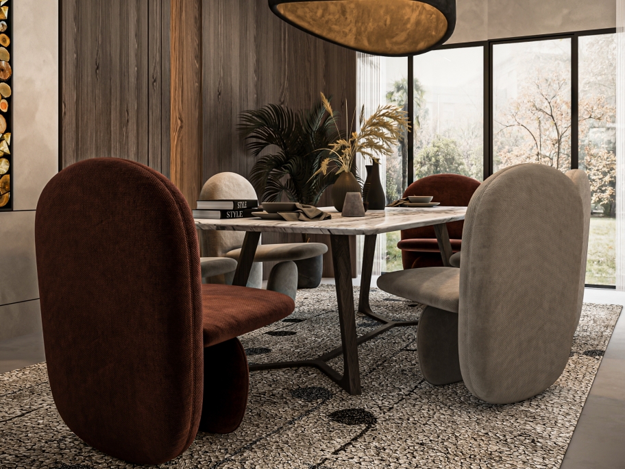 Dining rooms are a place of conviviality that is why we must turn this area into a gorgeous environment that will delight the entire family. The CELL RUG styles the floor of this dining room with elegance and matches with the lighting. The warm hues radiating from the suspension lights and the rug create a cozy dining space that will make you stay longer at the table with your loved ones.