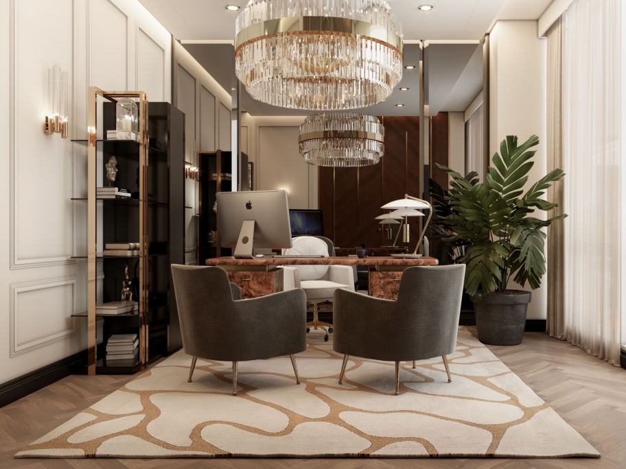 MODERN HOME OFFICE DESIGN WITH THE WHITE GARDEN RUG