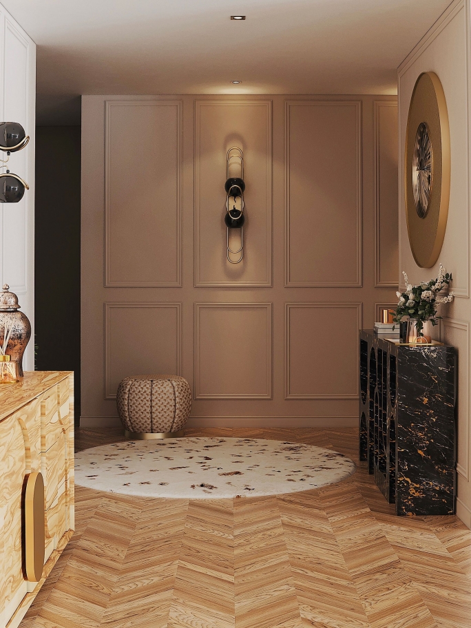 Graphic design comes in all kinds of inspiration. In this hallway ambience, you can see our geometric JOH Rug, with influence on various kinds of perspectives as well as the conjugation between light and shadow. The splash of wood brown shades also make it a perfect mid-century design. Created with Natural Wool and Botanical Silk, employing techniques like Hand-tufting, Overtufting and Carving.