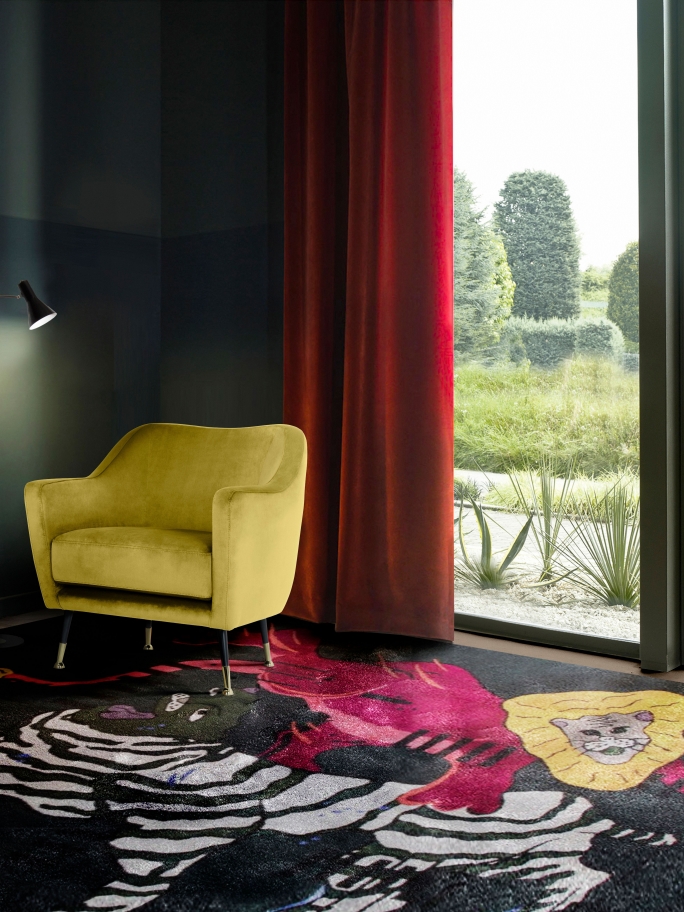 With earth tones, this mid-century reading corner brings us the importance of the connection with mother nature. The hand-tufted rug - Madeira - is a true inspiration and it's proof that we can have the strength and elegance of nature into our spaces.
