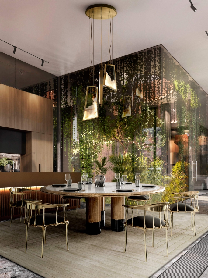 The Oslo shaggy rug combines nobility and comfort, leading to a perfect rug to dress in a dining room or even a bedroom. The Oslo rug's presence makes it so this dining room instantly becomes more comfortable and warm. Made with Bamboo Silk and New Zealand wool, this bespoke rug is a must-have for interior design enthusiasts.