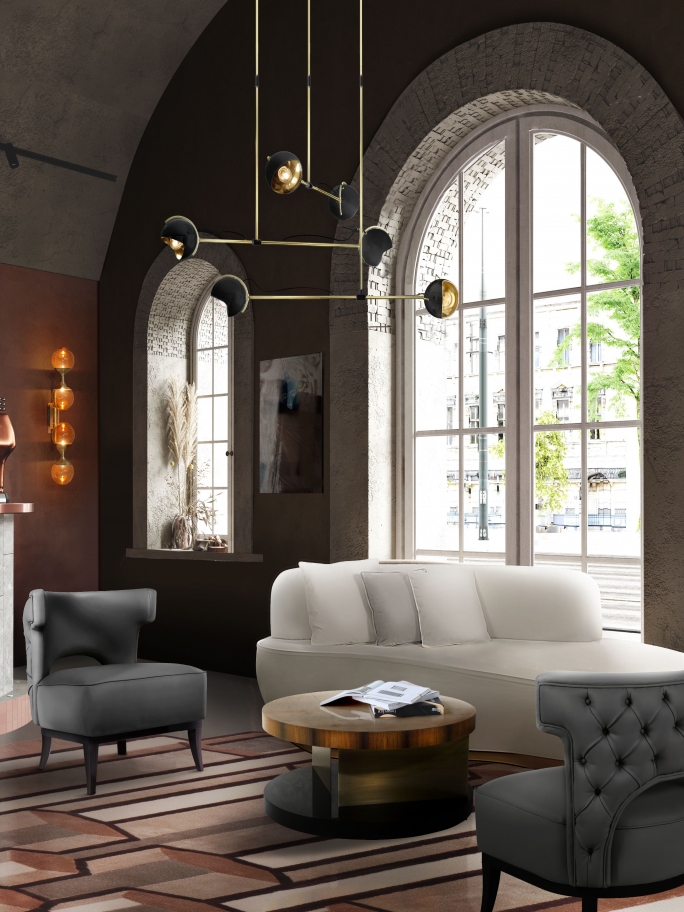 A total black and white living room design with some pink details by the Graff urban rug which also brings an irreverent look into the living room, breaking the norms of simple design. Graff is a modern rug inspired by the urban art that we are used to seeing in our urban daily living.